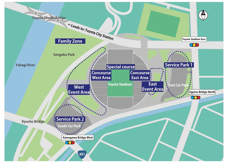 Service Park 1 Area, Service Park 2 Area, Service Park 3 Area ※Refer to the venue layout