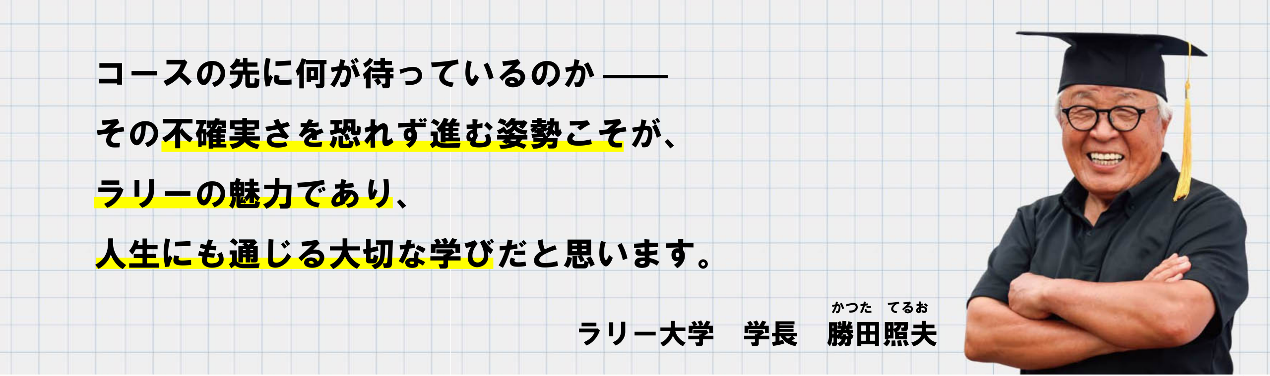 さあ、あなたもラリー大学の学生として、ラリーの魅力を体験しながら“卒業”を目指しましょう!