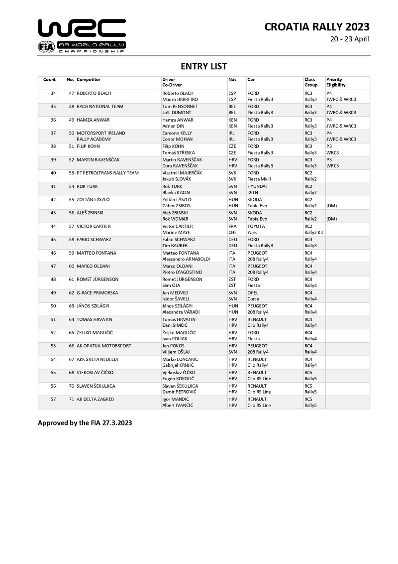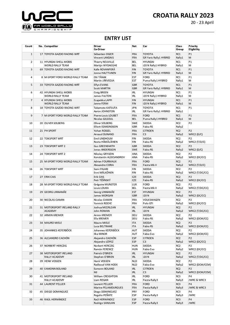 2021年にWRC初開催となったクロアチアラリーは、2023年4月20日(木)~23日(日)開催される。2022年と同様に南部のアドリア海沿岸から北部トラコシュチャン城までのエリアにSSが設定され、20のSS(合計301.26km)の合計タイムで争われる。サービスパークはクロアチアの首都ザグレブに設定され、セレモニアルスタートとセレモニアルフィニッシュも同地で行われる。