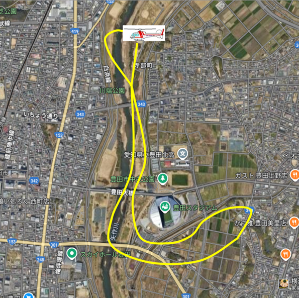 豊田スタジアム前 当日券販売所 ※受付にてご予約後、ヘリポートまで送迎車にてお送り致します。