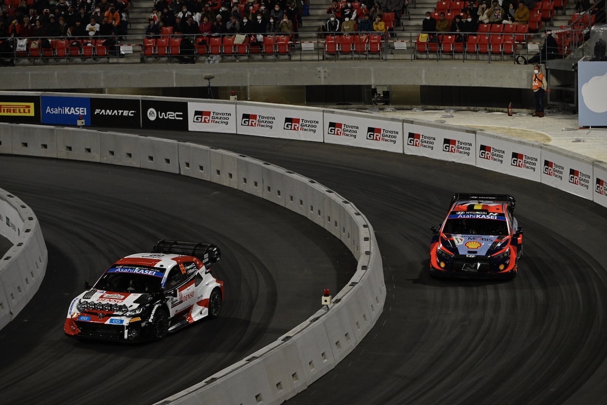 ヒョンデのi20 Nラリー1マシンは、豊田スタジアム内で行われたスーパースペシャルステージで圧倒的な強さを見せつけた。ヌービルが優勝し、チームメイトのエサペッカ・ラッピとダニ・ソルドがそれぞれ2位と4位を獲得した。