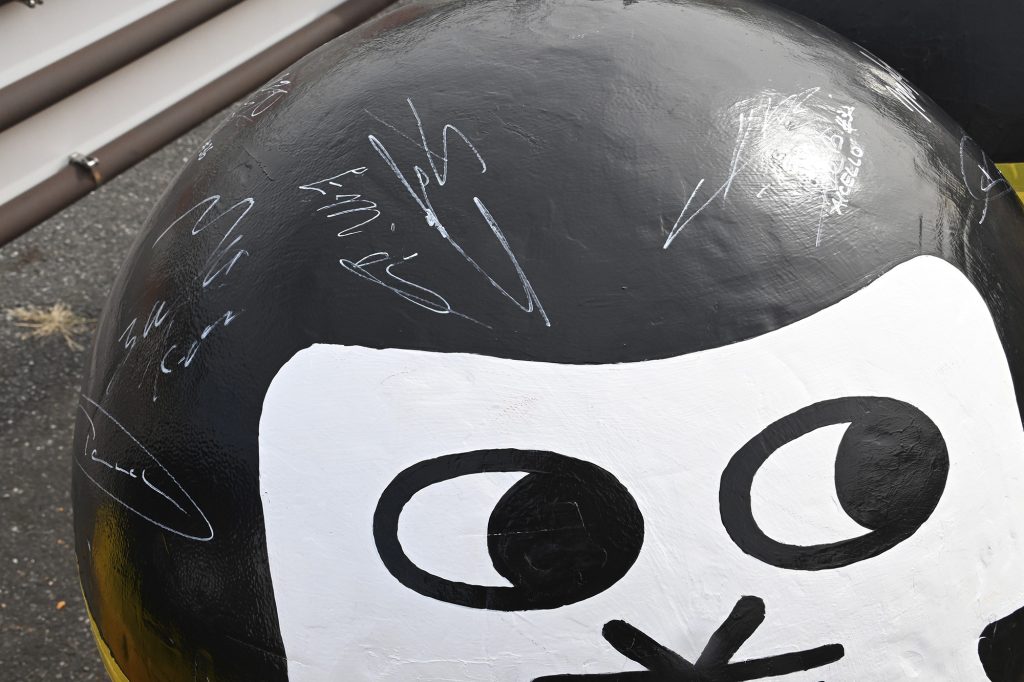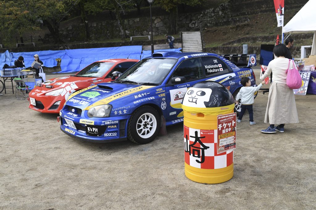 現在この「オカザえもんのクッションドラム」は3体が用意されており、そのうちの1体はラリージャパン参戦の各選手のサインも入っていたりします。ラリージャパン・岡崎スーパーSSの象徴的なアイテムとして各所のイベントに出動していたりしていますが、この3体の揃い踏みのイベントは今回の岡崎スーパーSSでの任務が最後になる、ということです。