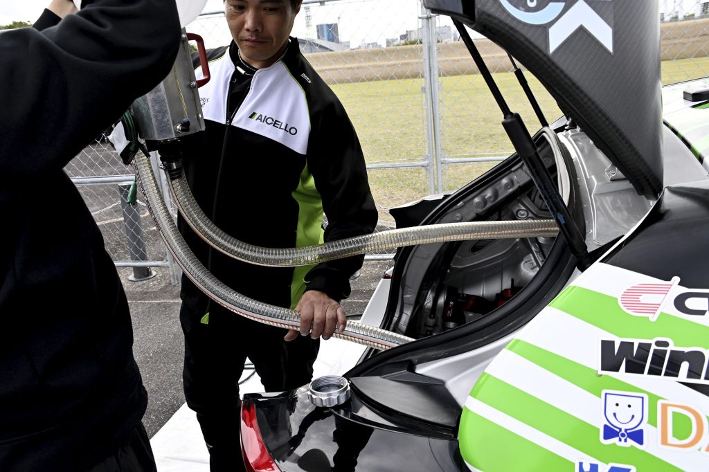 その「RRX AS」はフランスからコンテナで日本に持ち込まれています。その量は1万7000Lにもなります。リフューエリングゾーンには、しっかりした囲いが設けられ、消防署員も立ち会っての給油となります。豊田消防署のスタッフはもちろん、このリフューエルに関わるスタッフも事前に訓練も行って、緊急事態に備えています。