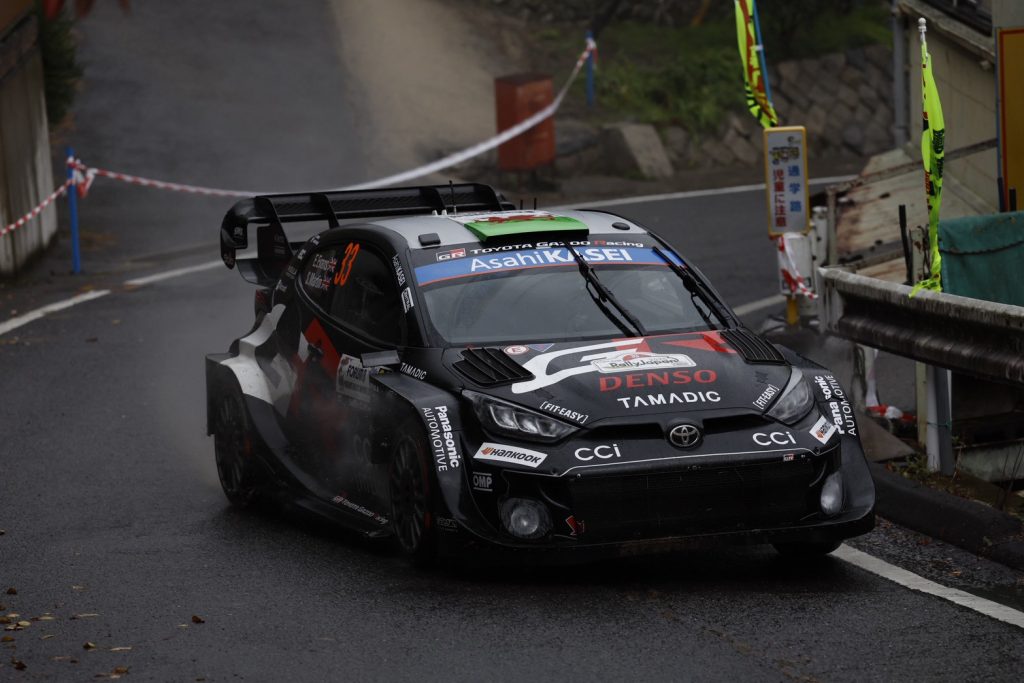 勝田貴元はスピンしたが、右前輪のパンクにもかかわらず復帰