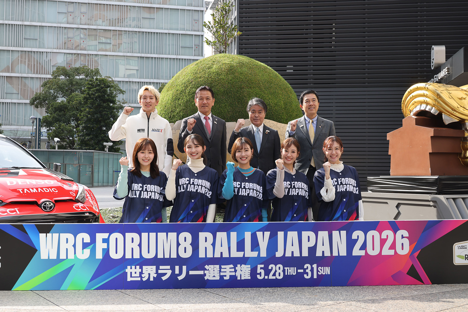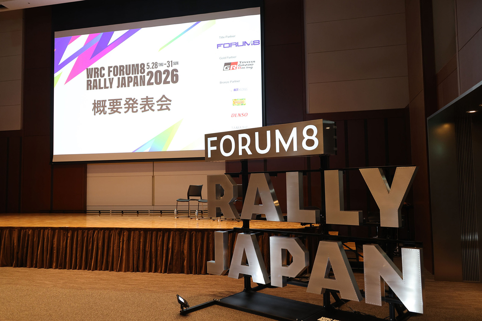 2月16日(月)、愛知県名古屋市のミッドランドスクエア内ミッドランドホールにて、約50名の報道関係者を前に、WRC第7戦「フォーラムエイト・ラリージャパン2026」の概要が発表されました。