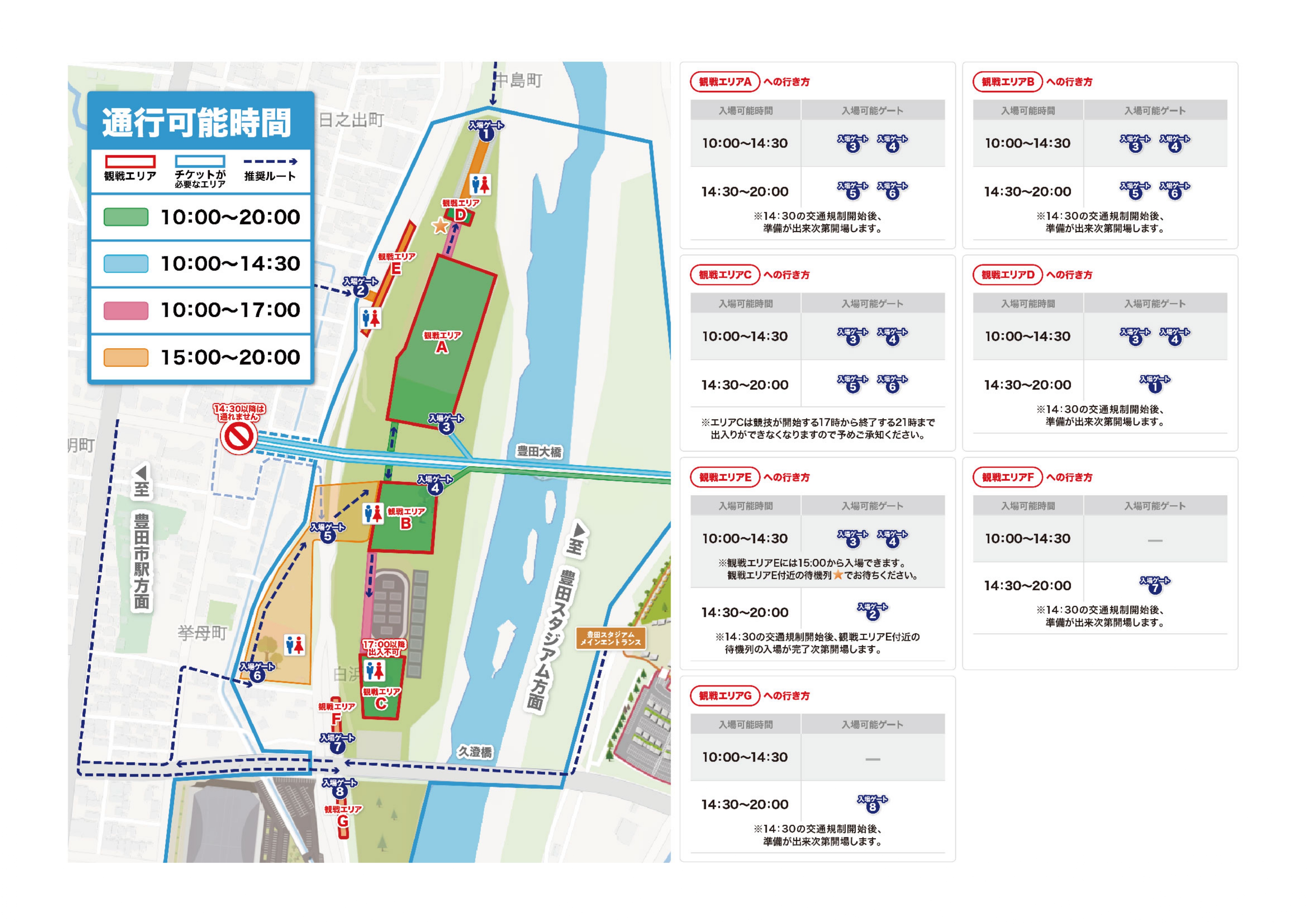 ・通行規制により、来場時間によっては大きく迂回していただく場合がございます。あらかじめご了承ください。
