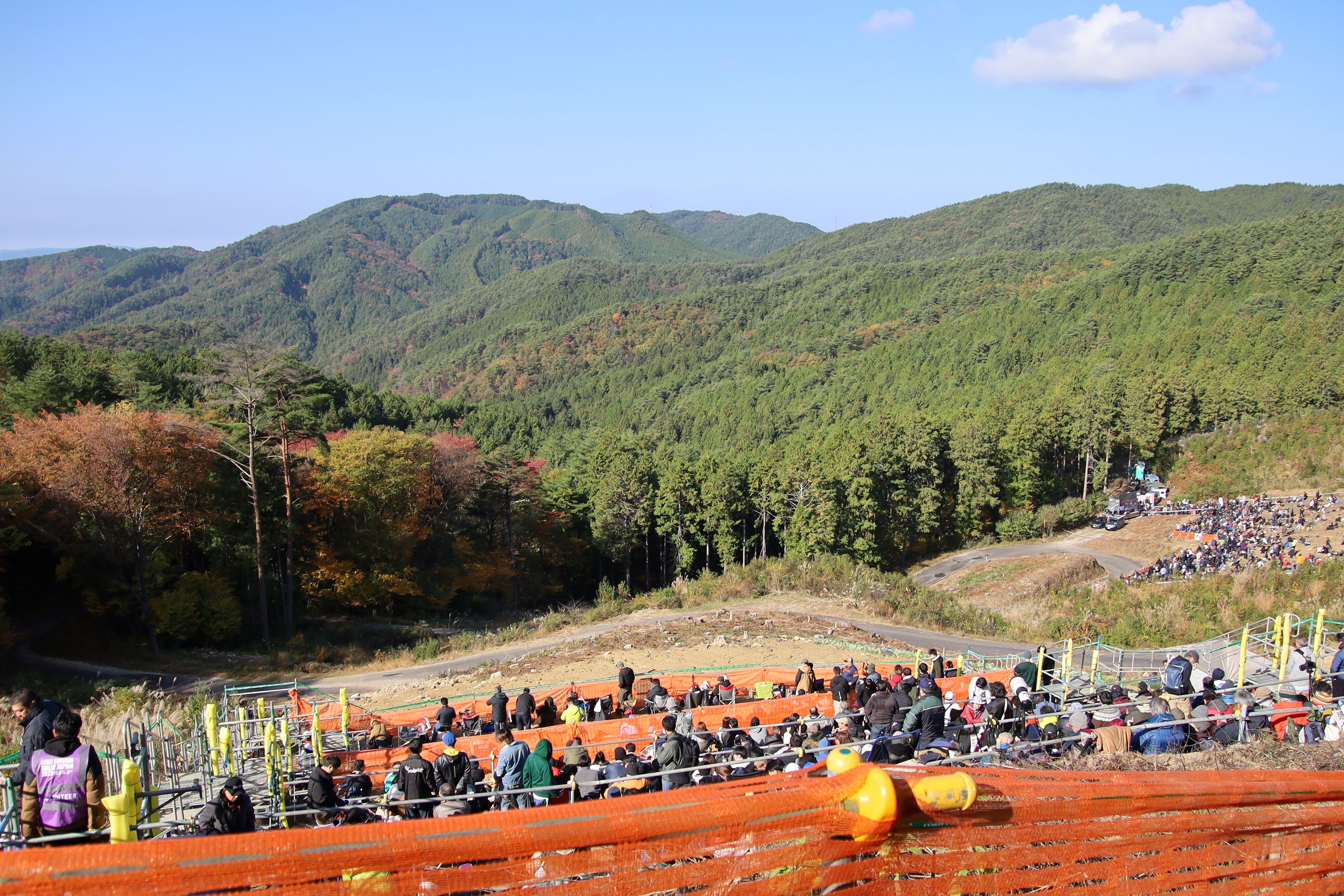 はるか遠くまで続く山並みを背景に、つづら折りの斜面を稜線に向かって駆け上がるラリーカーを間近で観戦できるエリア。迫力のあるコーナリングと、自然の景色が織りなす絶景スポットです!